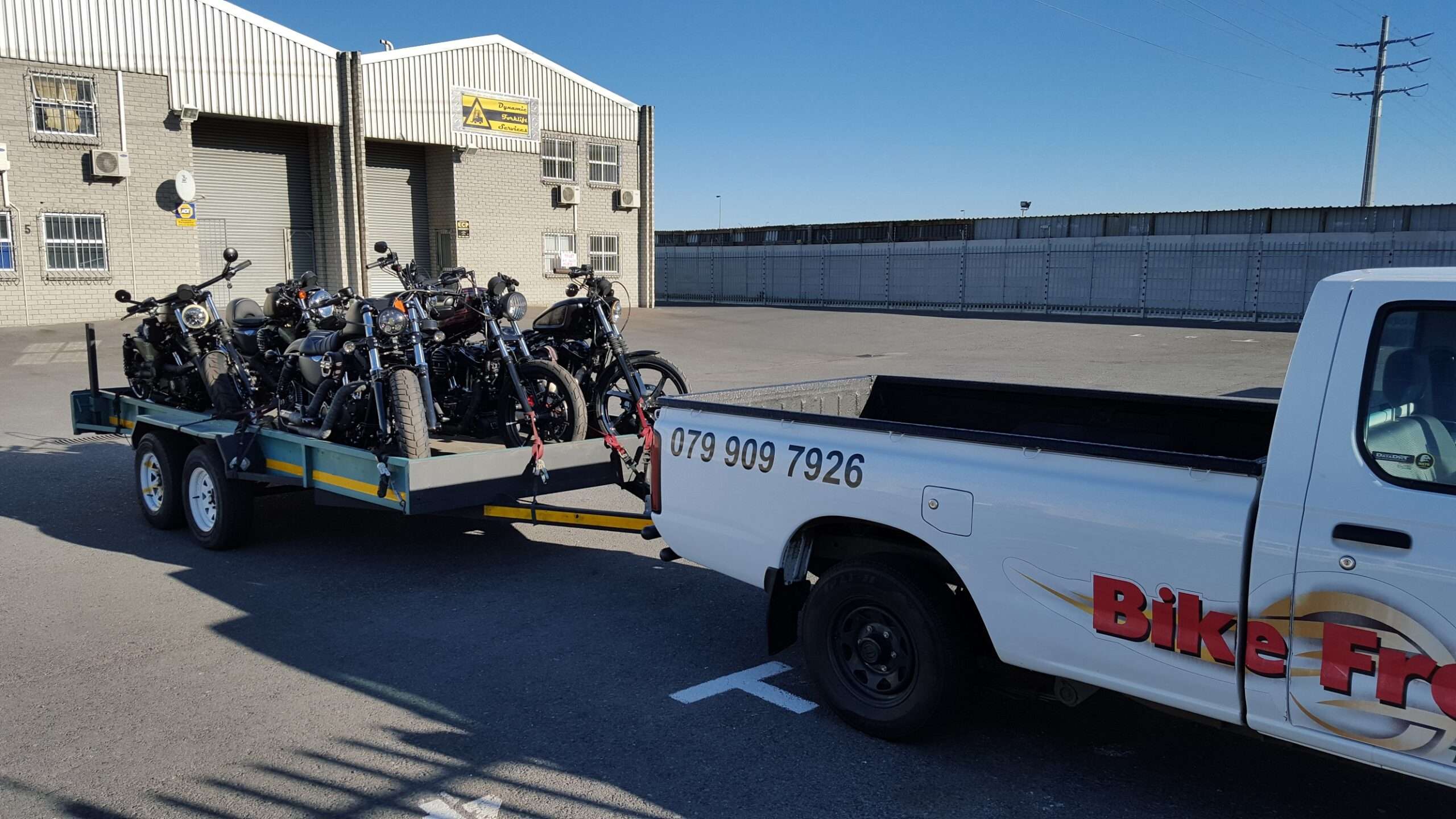 Bike Freight Transport was established in 2010 in Cape Town, South Africa, as Bike RnR. Specialising in MOTORCYCLE TRANSPORTATION. With just one, two bike trailer and a Dodge RV. Driven by myself and managing the business from the road.