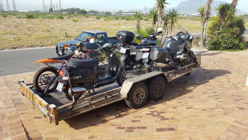 New consignment of bikes just arrived. KTM 150 from Khathu going up to jhb. BMW K1600 arrived from George. Ducats Multistrada down to the Cape from Durban and the scooter down from Pretoria.